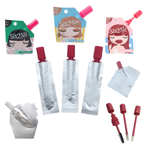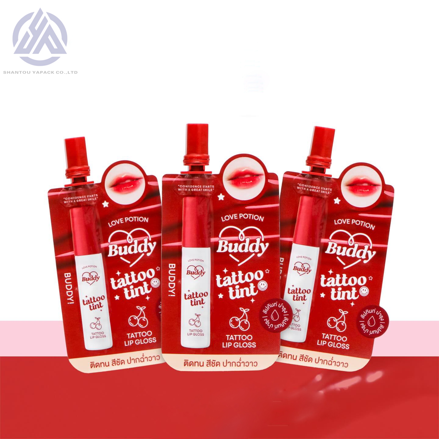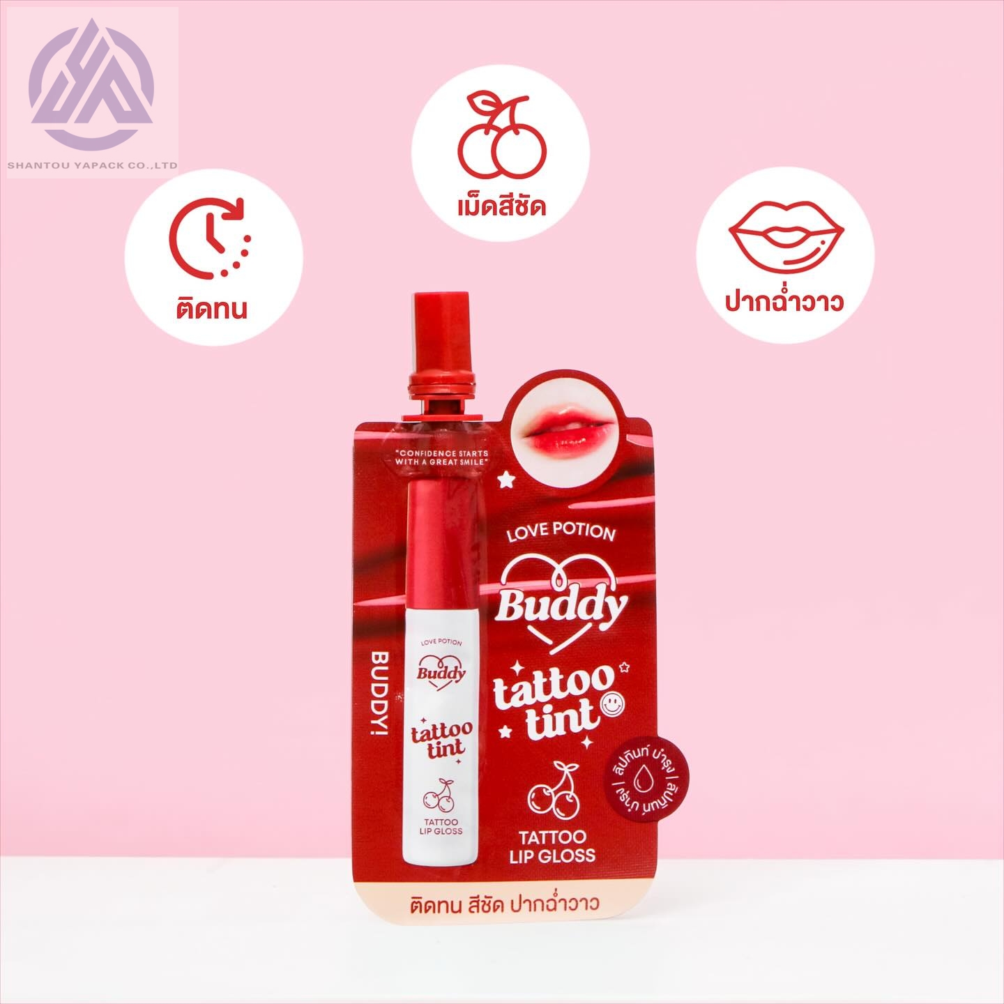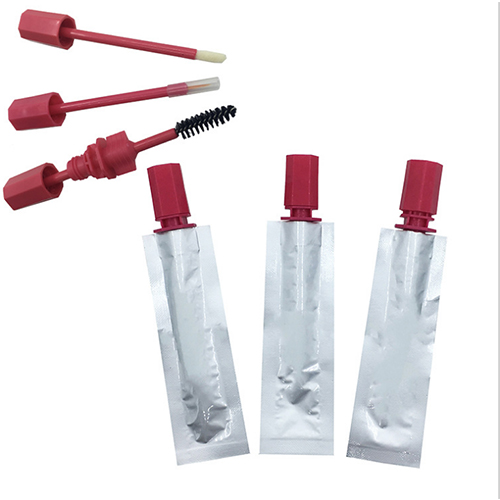 Tattoo tint customized printed aluminum foil cosmetic pouch lip gloss and mascara brush packaging bag