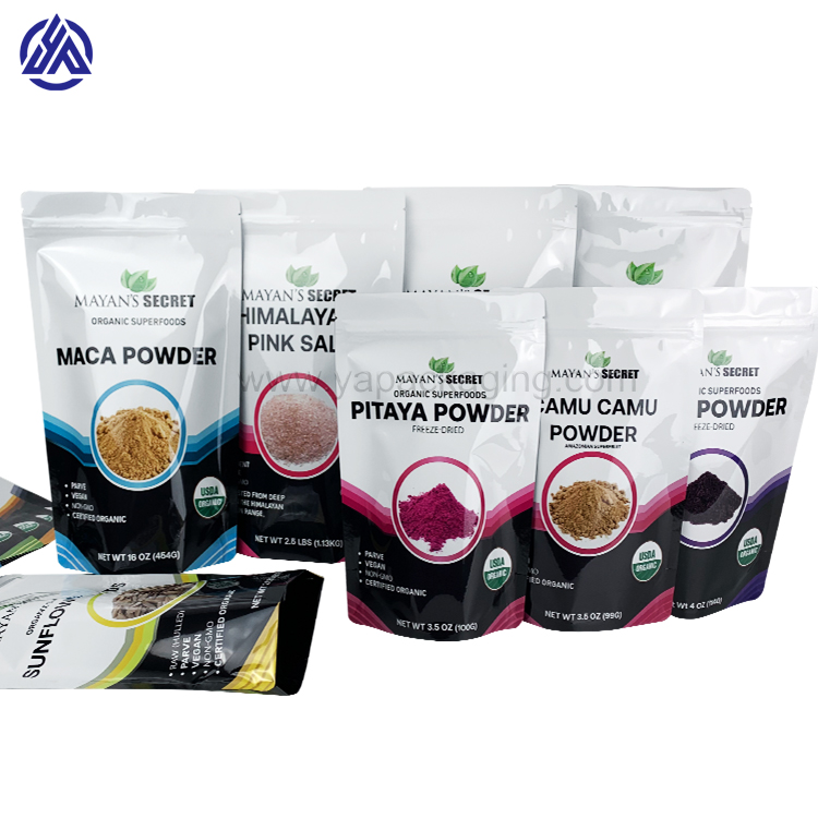 YAPACK Custom Printed Glossy Aluminum Foil Stand Up Pouch For Maca Powder 16oz